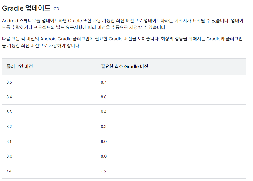 https://developer.android.com/build/releases/gradle-plugin?hl=ko#updating-gradle