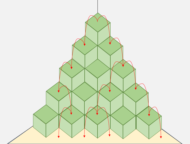 - 녹색거탑이 층이면, 총 개의 블록을 이용한 최단 경로로만 내려온다.