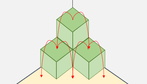 - 녹색거탑을 내려올 때는 정상에서 시작해 노란색 바닥까지, 항상 인접한 아래층의 블록으로만 내려온다.
