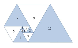 파도반 수열 P(N)은 나선에 있는 정삼각형의 변의 길이이다.