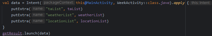 API 통신때 어떻게 넘겨줄 수 없을까 싶었지만 lifecycle때문에 그건 불가능하다고 생각되었고, db를 쓰는게 아니라면 결국 mainActivity에서 putExtra로 넘겨주는게 제일이라 생각되었다. putExtra로 넘겨주자니 넘겨줄 데이터가 변수 한 두개가 아니라 리스트 단위였기에 문제가 발생했었다.