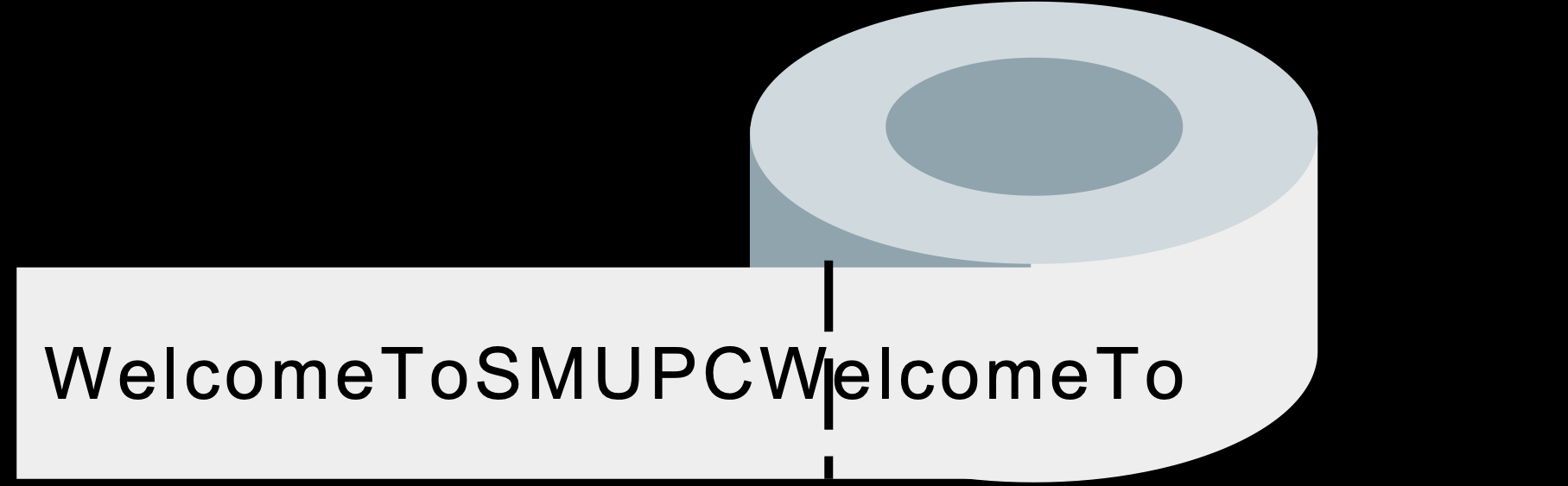 라벨지에는 공백 없이 글자들이 이어져 있고 "WelcomeToSMUPC"의 마지막 글자인 C 이후에는 W부터 다시"WelcomeToSMUPC"가 반복된다.