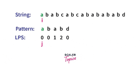 위에서 구했던 일치하는 패턴의 경계 길이 배열 = [0, 0, 1, 2, 0]