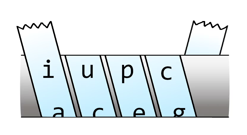다음은 굵기 3의 막대를 사용하여 "iupc" 라는 문자열을 암호화하는 예시이다.