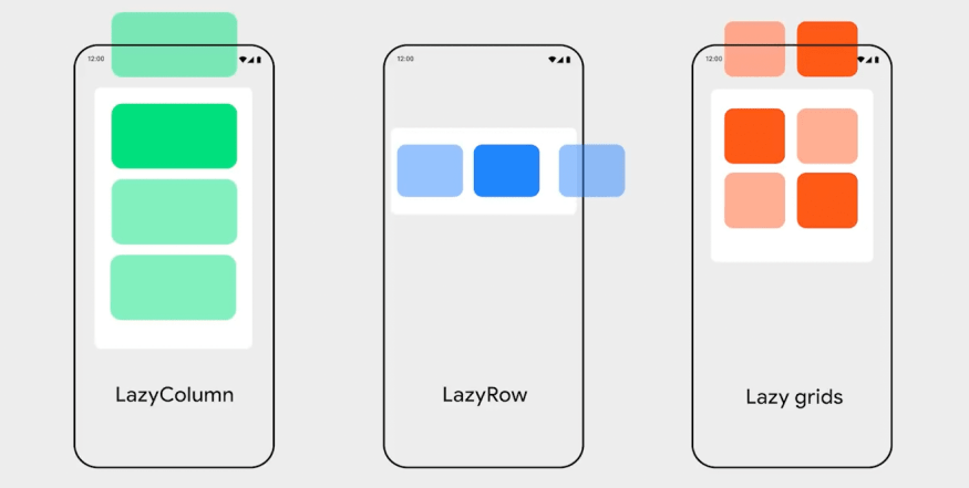 LazyColumn 뿐만 아니라 Row, Grids도 존재하는데, 이건 list의 항목들을 표현해내기 위한 컨테이너 사용했었다.