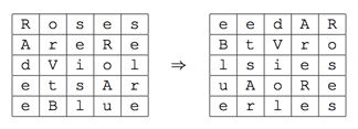 예를 들어, 편지의 내용이 "RosesAreRedVioletsAreBlue"인 경우에, 암호화한 편지는 "eedARBtVrolsiesuAoReerles" 이 된다.