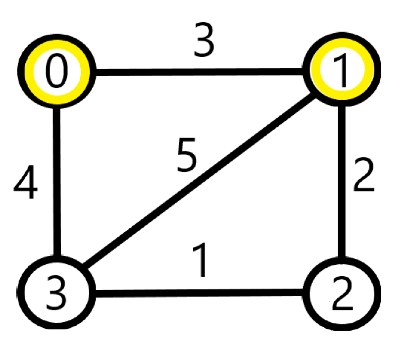 0과 3을 비교하면 같은 0의 값을 가지게 되므로 이 둘은 이미 연결되어있다고 할 수 있다.