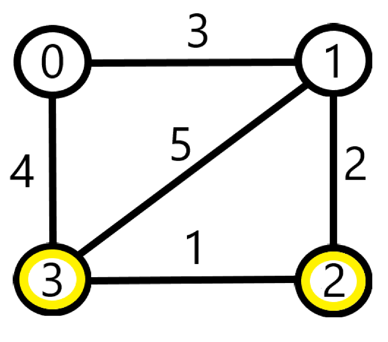 val graph = arrayOf(intArrayOf(0, 3, 4), intArrayOf(2, 3, 1), intArrayOf(1, 2, 2), intArrayOf(0, 1, 3), intArrayOf(1, 3, 5))