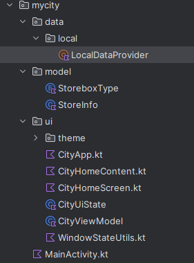 MainActivity.kt <- CityApp.kt <- CityHomeScreen ~