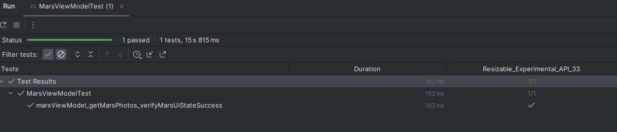 - marsViewModel_getMarsPhotos_verifyMarsUiStateSuccess() 라는 함수를 만들고 @Test 주석을 추가한다.