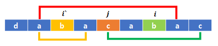 따라서 P[i] = P[i`]이고, P[i`]는 이미 이전에 구했기에 더 이상의 연산은 필요하지 않다.