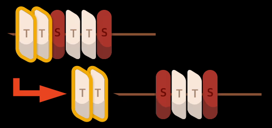 소떡소떡은 기다란 꼬치에 소세지와 떡을 끼운 음식이다. 편의상 소떡소떡을 알파벳 s와 t로만 구성된 길이 N의 문자열로 생각하자. 알파벳 s는 소세지를, t는 떡을 의미한다.